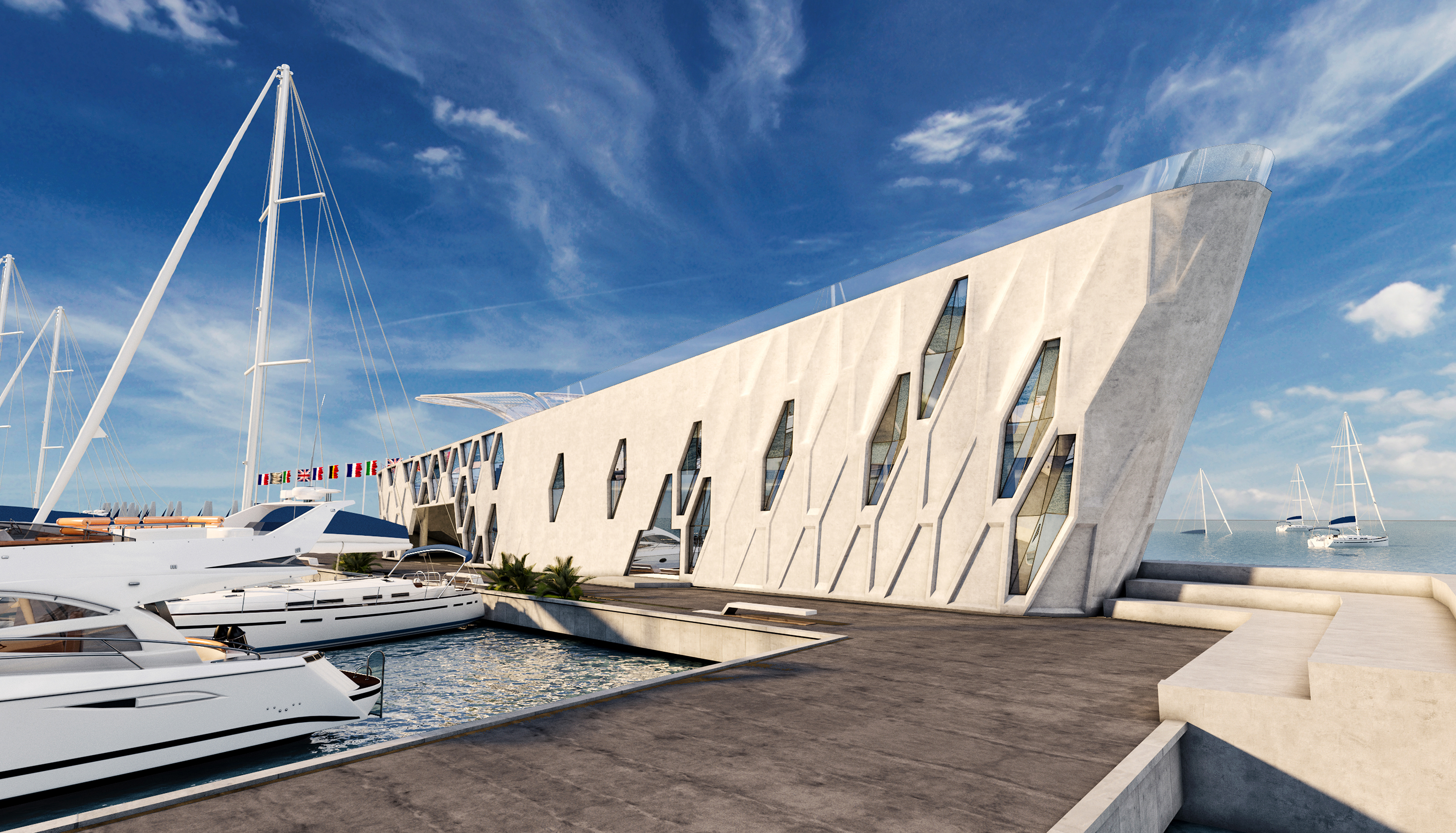 - A harbor master's office that will include: reception, technical room, offices, lookout, and meeting room;